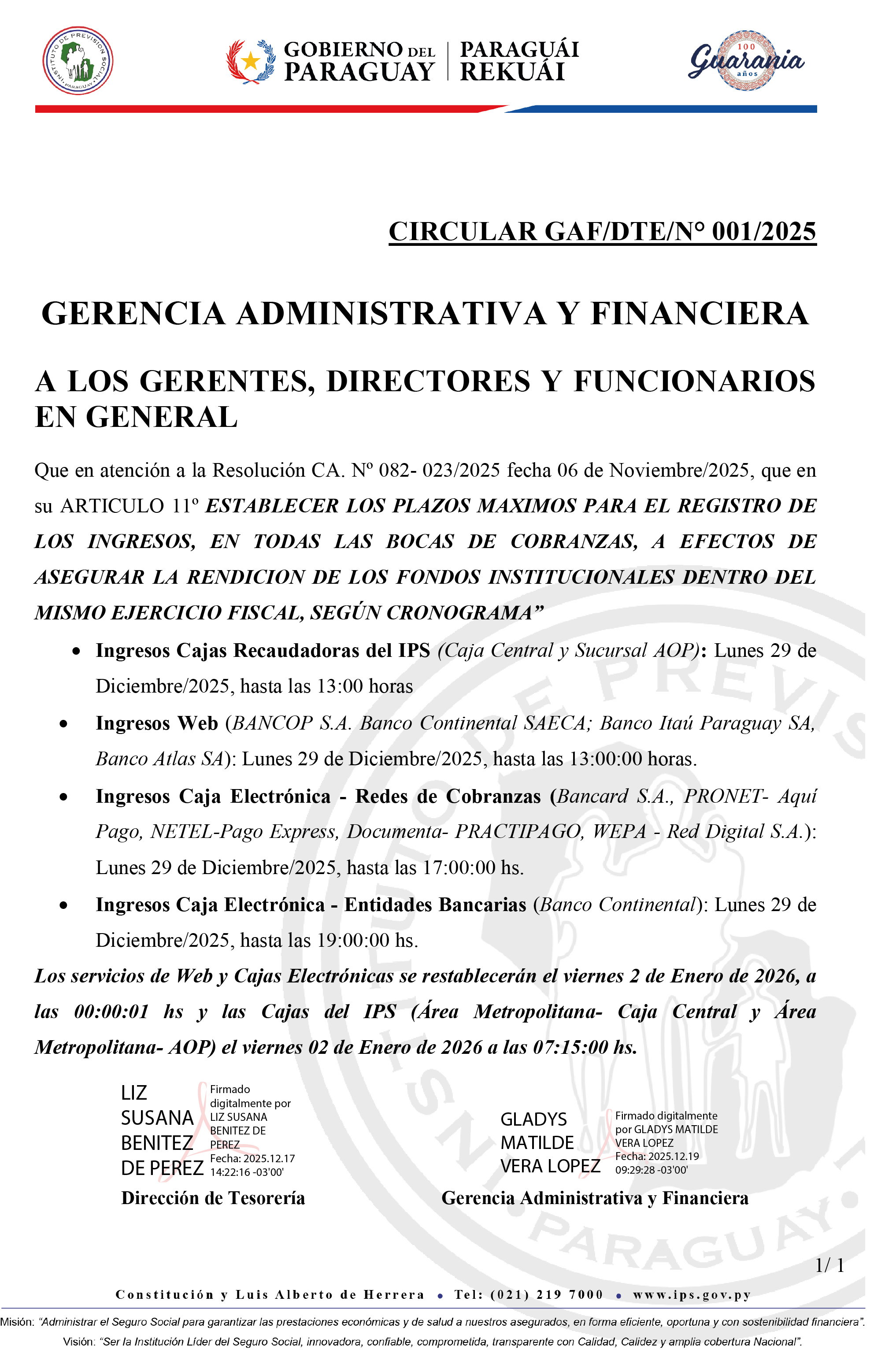 Circular GAF/DTE N° 001/2025