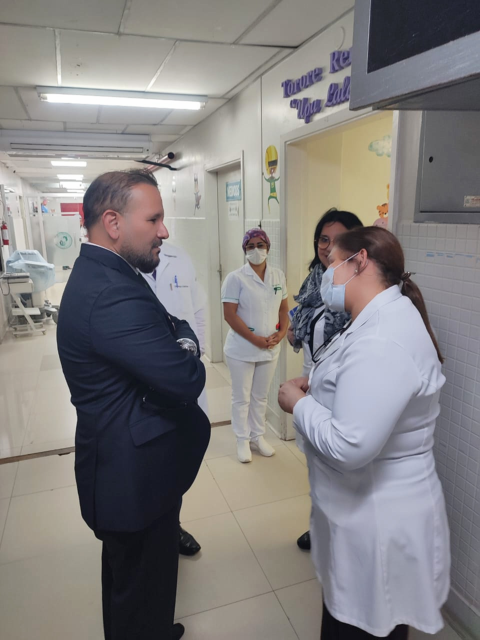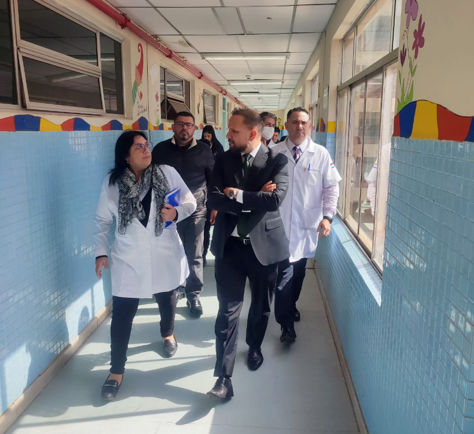“Por indicación del presidente del Consejo de Administración del Instituto de Previsión Social, Dr. Jorge Brítez, hemos iniciado la primera de una serie de recorridos que estaremos realizando durante nuestra gestión al frente de la Gerencia de Salud. En esta ocasión, visitamos las instalaciones de los servicios que forman parte del Departamento de Pediatría del Hospital Central”, afirmó el Dr. Derlis León, Gerente de Salud del IPS.