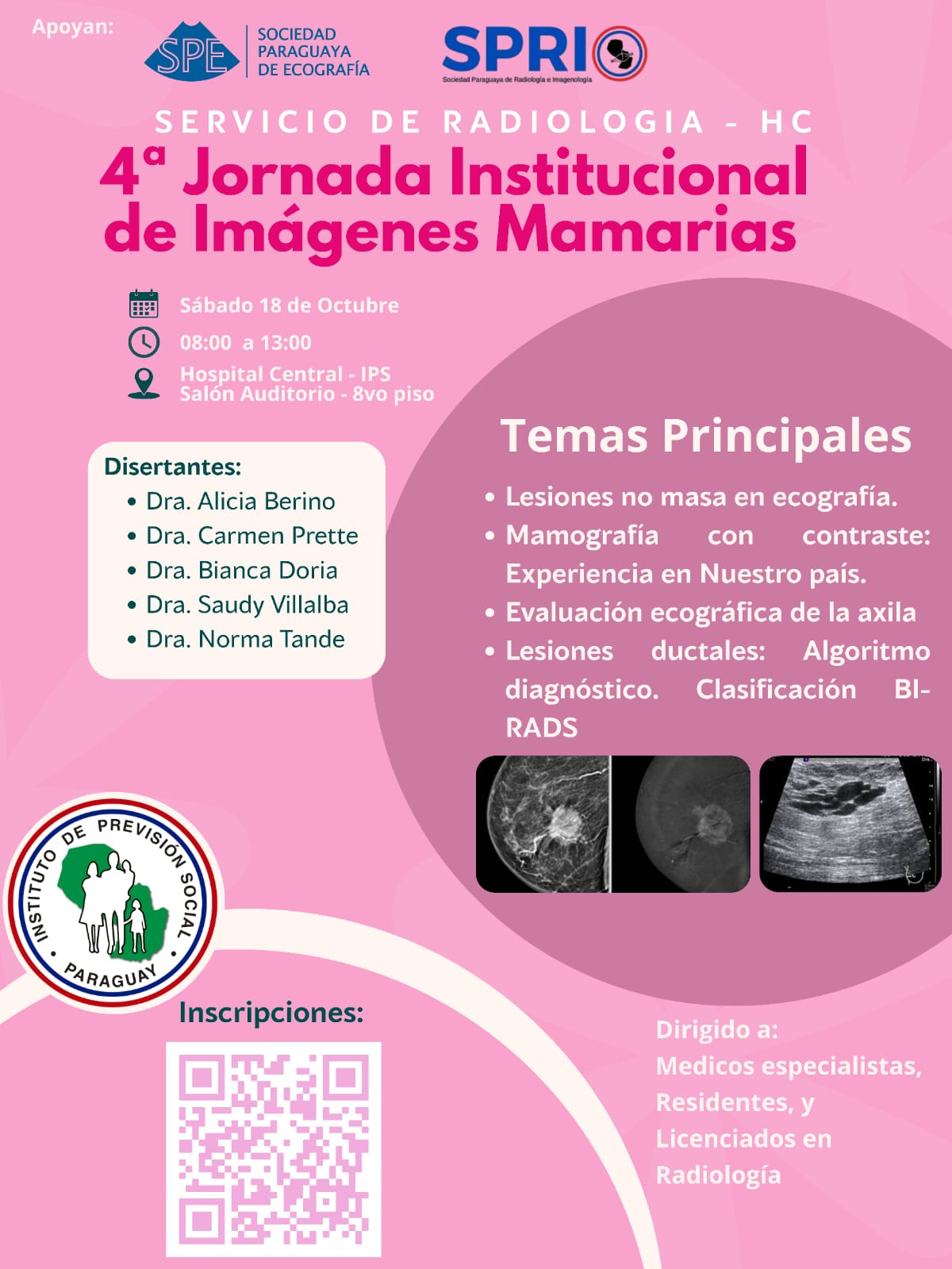 El Servicio de Radiología del Hospital Central organiza la IV Jornada Institucional de Imágenes Mamarias a realizarse el sábado 18 de octubre en el marco del Día Mundial de Lucha contra el Cáncer de Mama.