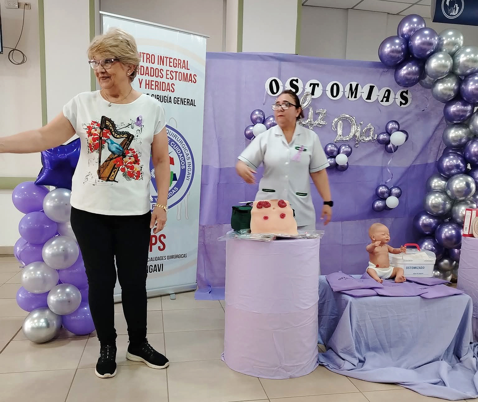 La presidenta del Club de Ostomizados, Miriam Báez, y otros integrantes del club estuvieron presentes en este evento para reivindicar sus derechos y conquistas que actualmente, están trabajando en un proyecto de ventanilla preferencial para atención rápida con una tarjeta identificatoria.
