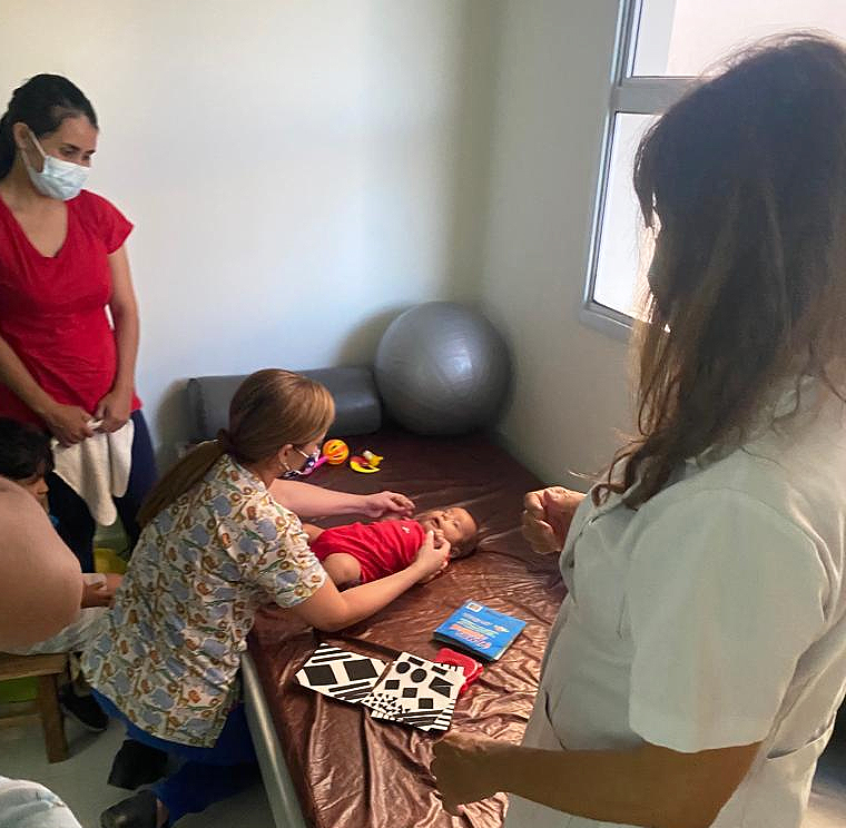 “En general, se busca minimizar las secuelas funcionales trabajando en estrecha relación con el paciente y la familia, estableciendo objetivos realistas que dan la base para el plan de tratamiento. Desde la fisioterapia abordamos el funcionamiento muscular a través de la intervención en el tono muscular, el equilibrio, la coordinación, la postura y el desarrollo de habilidades motoras o hitos motores como el control cefálico, volteo, sedestación, gateo, bipedestación y marcha. En el servicio se atiende un promedio de 20 pacientes por mes” manifestó.