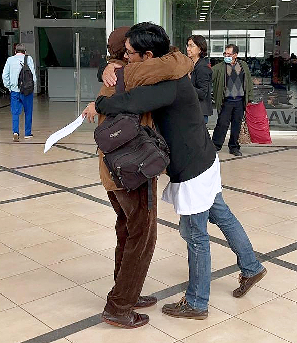 Francisco Saldivar, 73 años: "Yo creo que los abrazos son curativos, y hoy estoy recibiendo con sentimiento puro. Es la primera vez que me abrazan frente a un hospital".