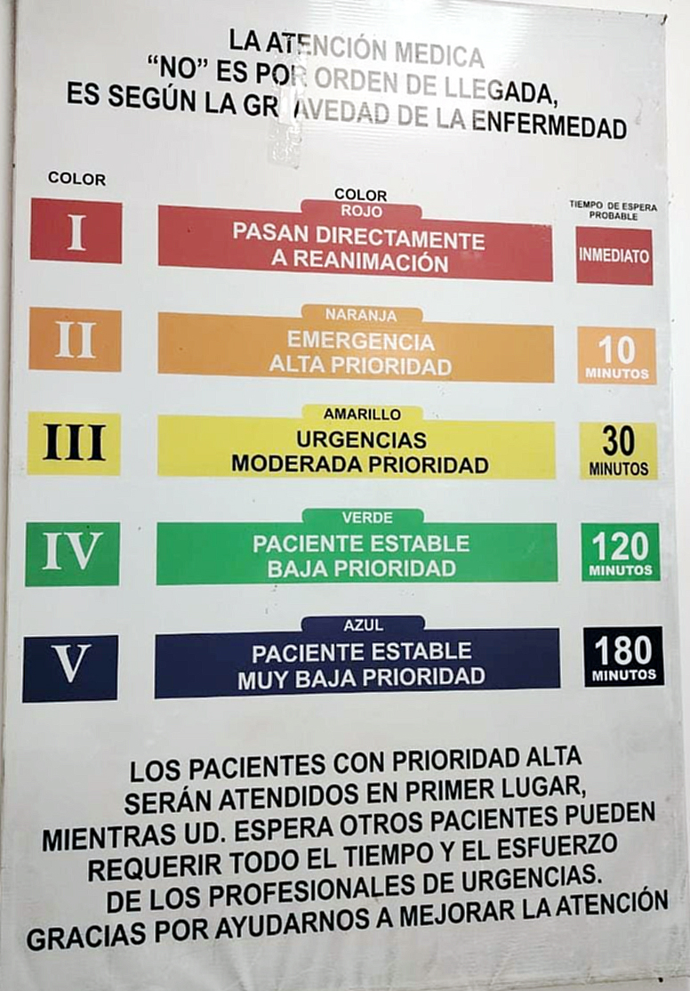 Esta clasificación, instaurada por normativa nacional e internacional, garantiza la atención según el grado de urgencias a partir de los signos y síntomas que presentan los pacientes al llegar al servicio de urgencias. Su objetivo es identificar rápidamente a los pacientes en situación de riesgo vital, mediante un sistema estandarizado o normalizado de ordenamiento.