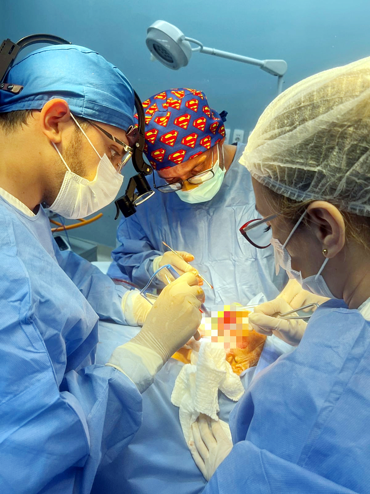 La cirugía fue encabezada por el Dr. Emilio Ojeda de Mestral, cirujano bucomaxilofacial del área Maxilofacial del servicio de Cirugía Plástica y Quemados junto al Dr. Juan Santacruz, médico cirujano especialista en la zona de la cabeza y cuello en conjunto con un plantel de especialistas de la previsional.