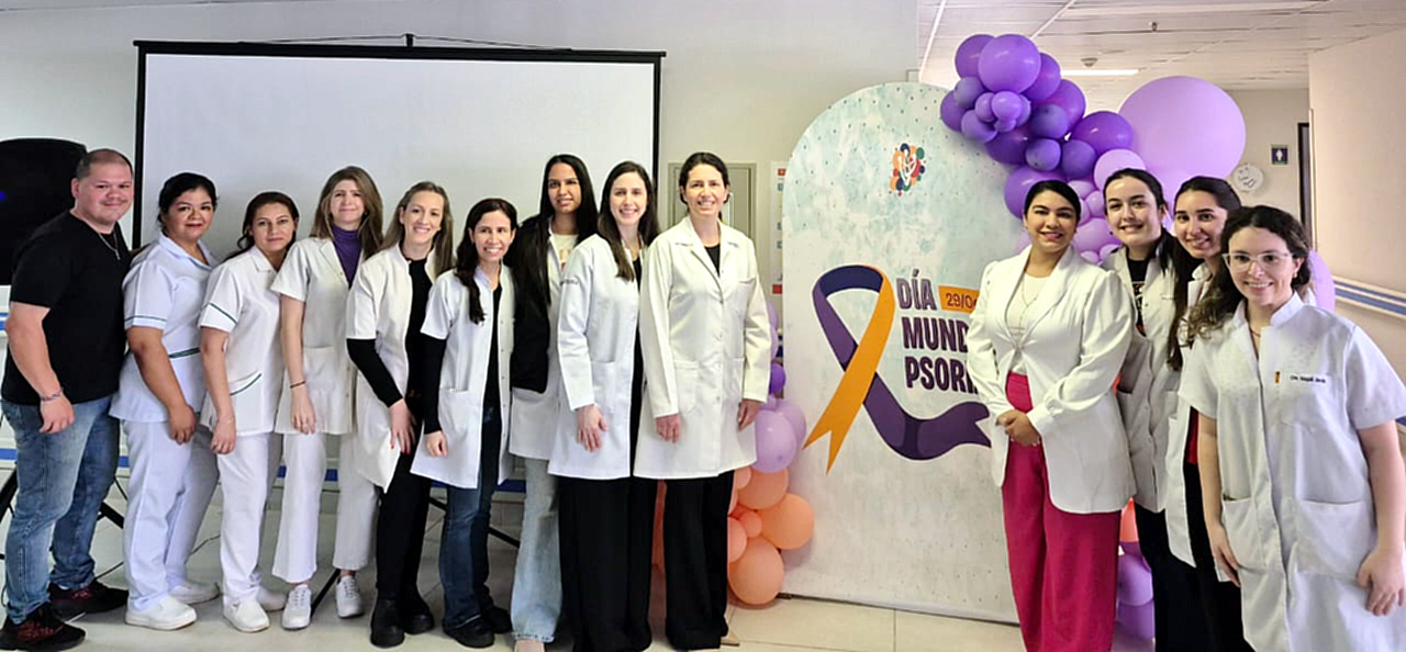 En la mañana de este miércoles 29 de octubre, el servicio de Dermatología del Hospital Central del IPS realizó una actividad educativa dirigida a pacientes con Psoriasis y sus familiares en el marco de la conmemoración del Día Mundial de la Psoriasis. Este año el lema es “Detener el efecto dominó de la Psoriasis”.