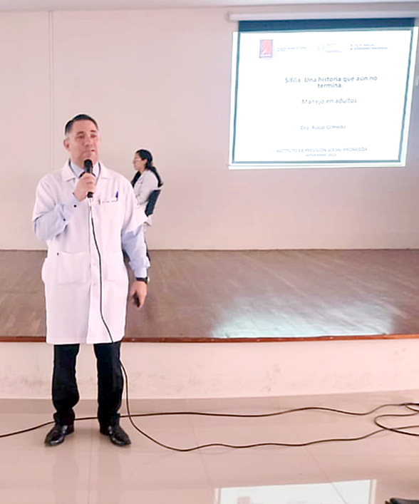 La jornada contó con la presencia del Dr. Hugo Martinez, director de la Dirección Médica del Hospital Central; la Dra. Gloria Cáceres, jefa del Departamento de Laboratorio del Hospital Central; la Lic. Sandra Cabral, jefa del Departamento de Epidemiología; médicos de diferentes servicios, médicos residentes y representantes del programa PRONASIDA, quienes acompañaron las presentaciones y reforzaron el compromiso institucional en la lucha contra la sífilis.