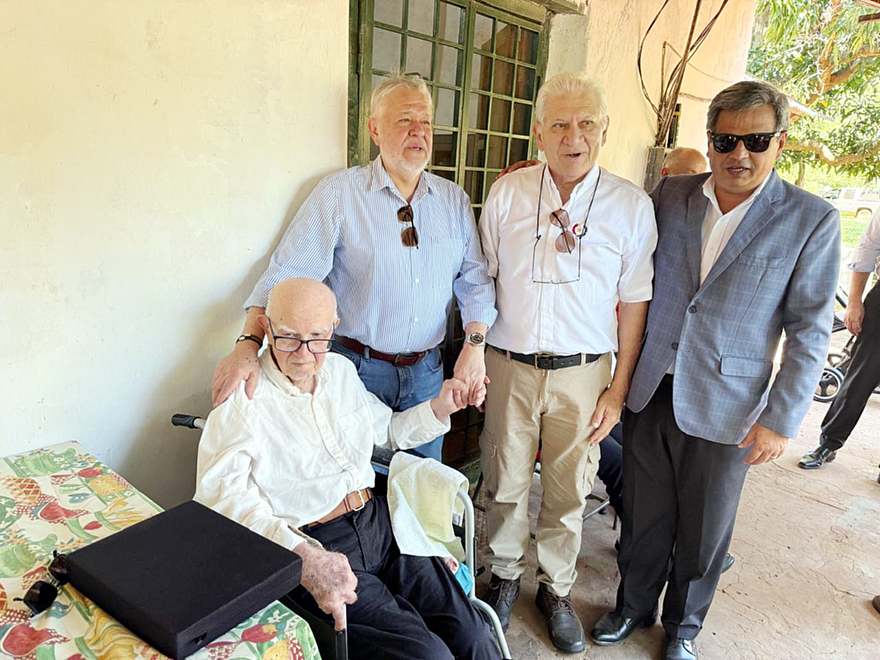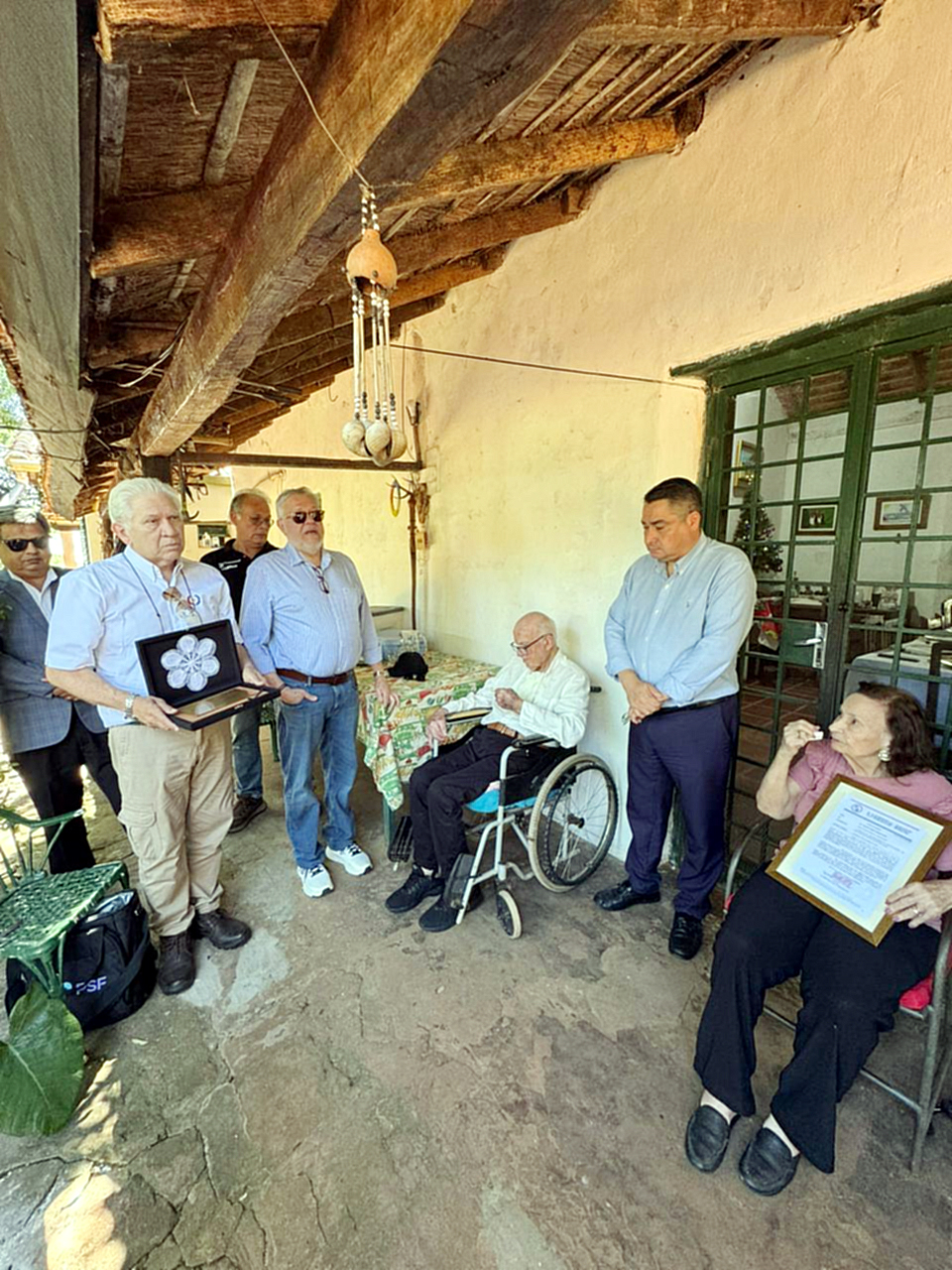 En la mañana del viernes 5 de diciembre, una comitiva institucional encabezada por el Dr. Jorge Brítez, presidente del Consejo de Administración del IPS, junto a médicos jubilados de la institución, se trasladó hasta el domicilio particular del Dr. Francisco Magín Quiñónez Imas, en el departamento de Misiones, para entregarle un reconocimiento institucional por su excelencia como Jefe de Cirugía General del Hospital Central y por su invaluable labor como formador de diversas generaciones de profesionales.