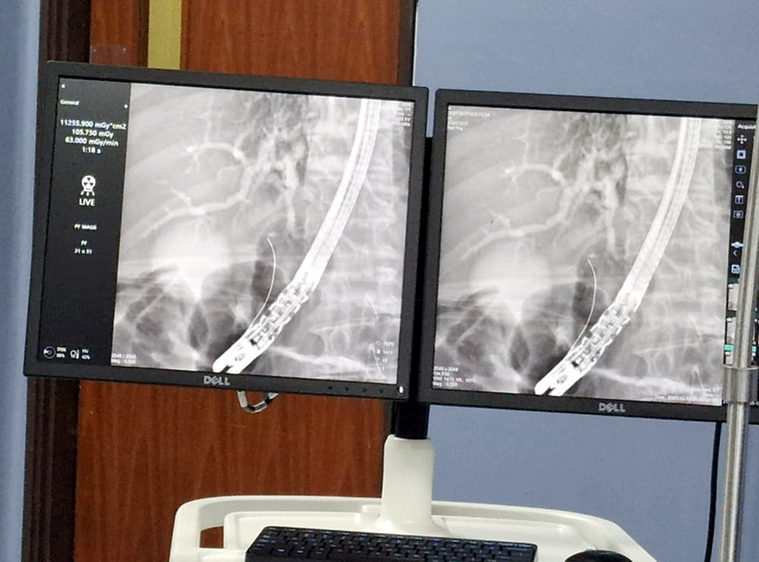El procedimiento fue realizado por los Dres. Félix Ibieta Galarza y Valeria Aguilera, apoyados por el servicio de Anestesiología, imagenología y enfermería, lo que demuestra la necesidad de multidisciplinariedad en el manejo de patología biliopancreática compleja dentro del Instituto de Previsión Social.