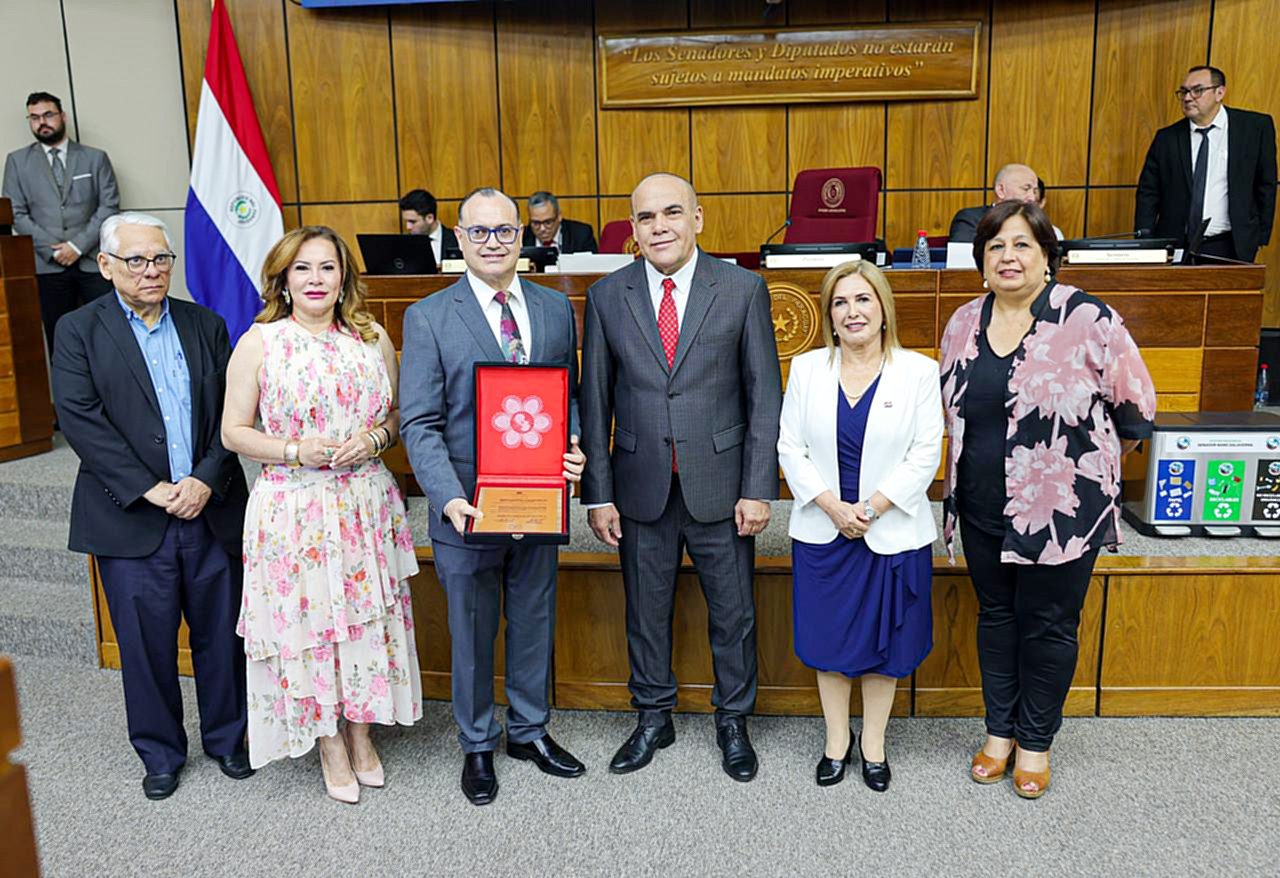 En una sesión cargada de emotividad y reconocimiento a la excelencia, la Cámara de Senadores hizo entrega de una placa y la Declaración N° 409, rindiendo homenaje al Prof. Dr. Elio Arnaldo Marín Sanabria, destacado neurocirujano de nuestra institución, por su invaluable aporte a la ciencia y a la medicina nacional.