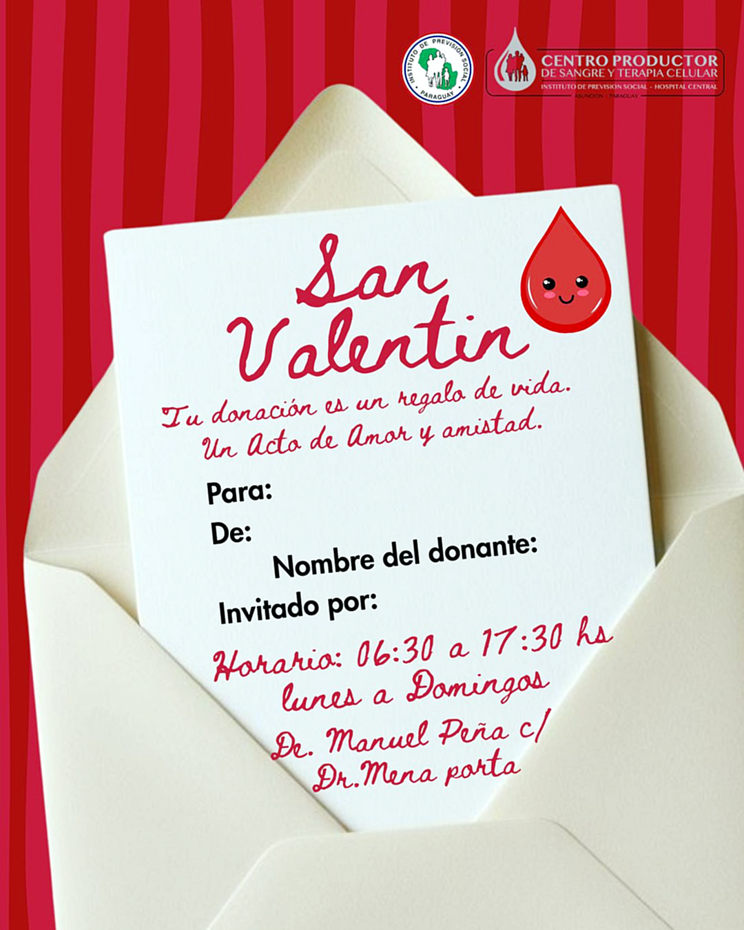 Los profesionales del Centro Productor de Sangre y Terapia Celular del Hospital Central invitan a las personas a salvar vidas y fomentan el amor al prójimo y a uno mismo mediante la donación de sangre y de plaquetas. Construyendo juntos un grupo fortalecido de héroes y voluntarios.