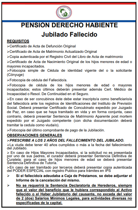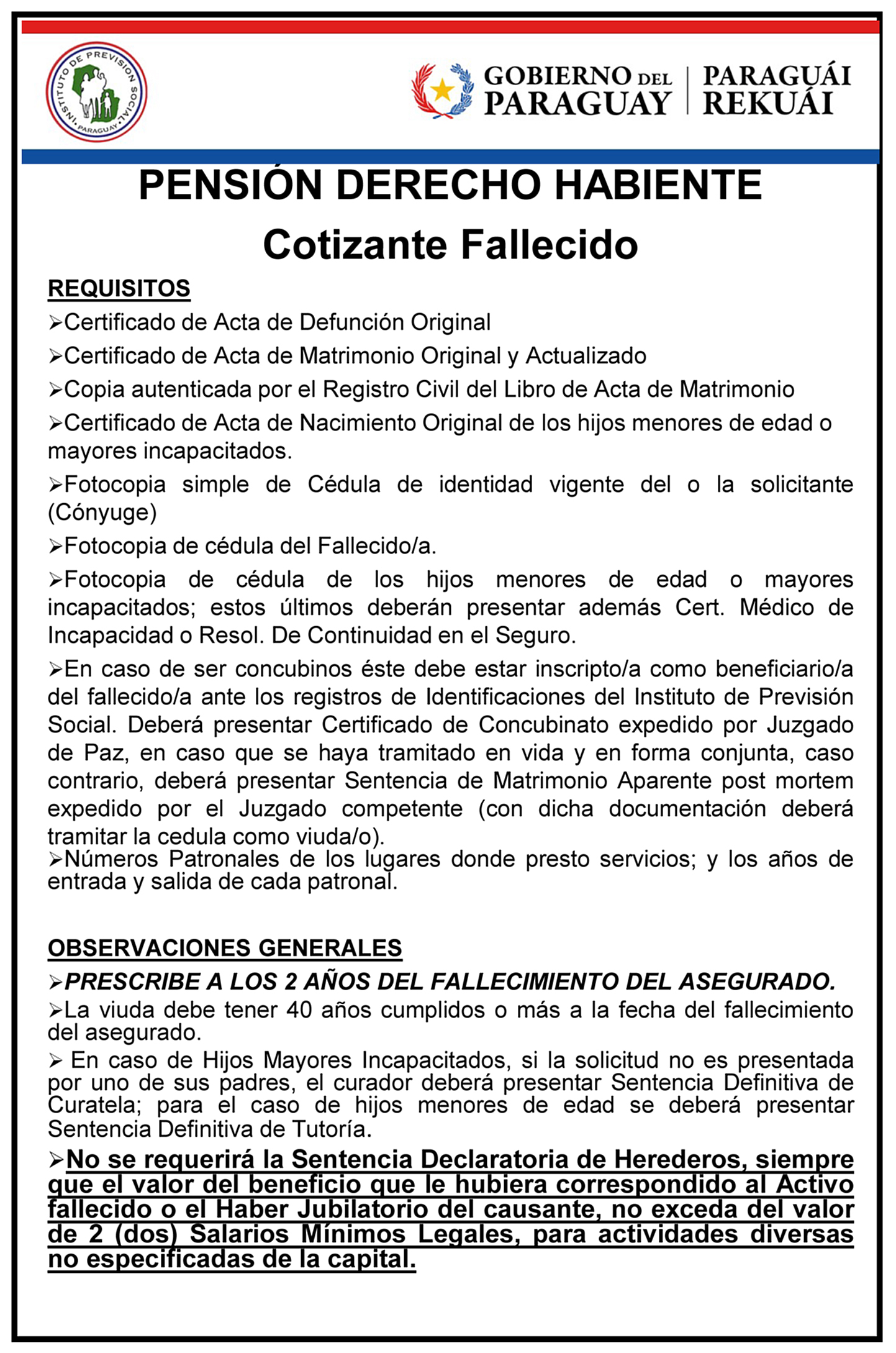 Solicitado por el/la viudo/a o concubino/a mayor de 40 años o por los hijos menores o mayores con capacidades diferentes de un/a Asegurado/a Cotizante o Jubilado/a Activo/a al momento del fallecimiento y con un periodo de tiempo de aporte al Instituto igual o mayor a 15 años.
