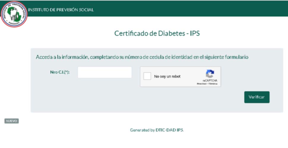 El IPS ha generado un acceso directo desde la Web del Instituto de Previsión Social, link de acceso: donde el paciente ingresará su número de Cédula de Identidad y de manera sencilla podrá obtener un Certificado en PDF con el membrete de la Institución.
