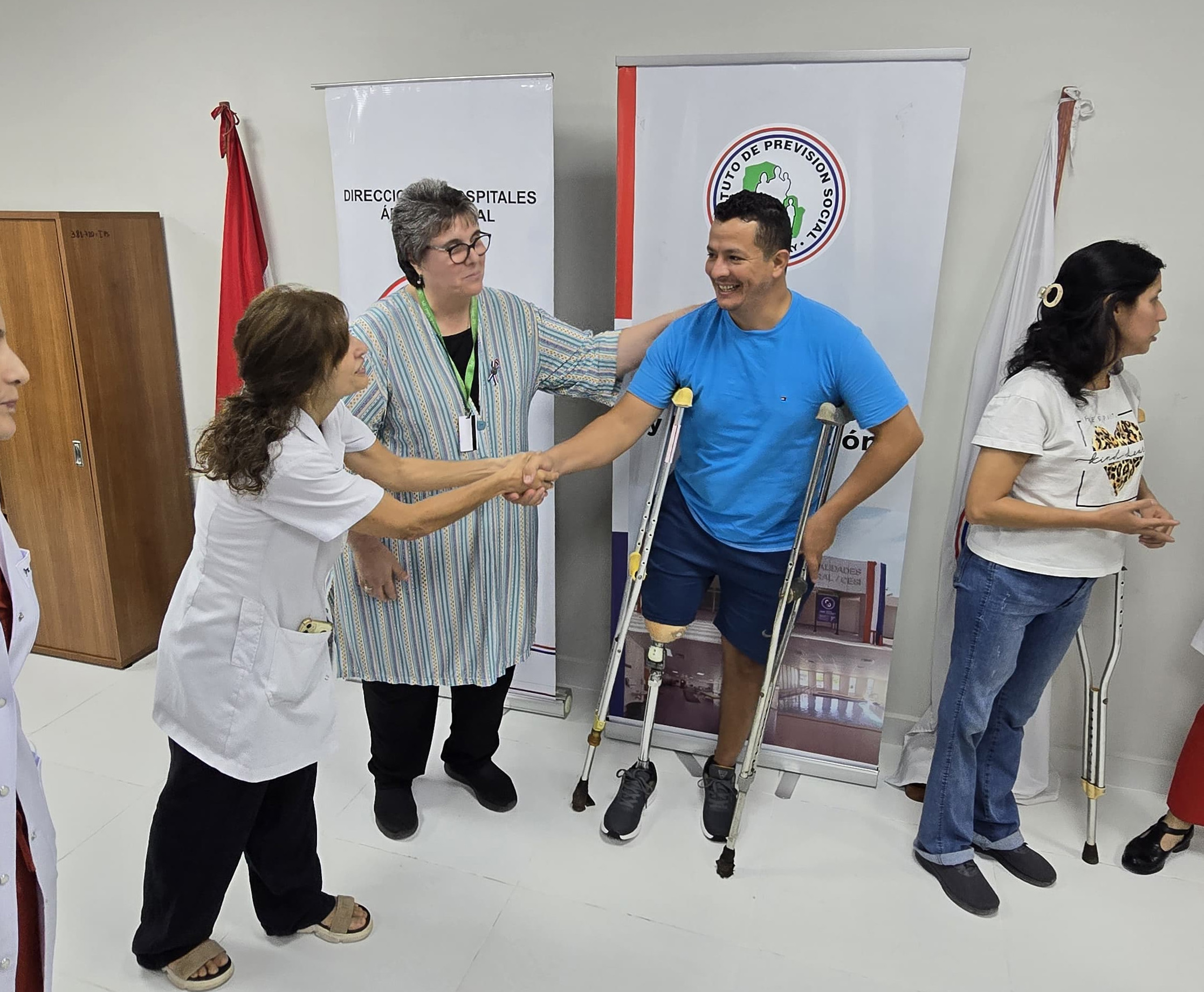 Por su parte, el señor Gracian Rojas, oriundo de San Pedro del Ycuamandiyú, también celebró el hecho de contar con una prótesis: “Ahora tengo la oportunidad de reincorporarme al trabajo. Anteriormente estuve como encargado de una estancia y con esto quiero volver a mi empleo. Voy a hablar con mi jefe”, comentó el paciente.