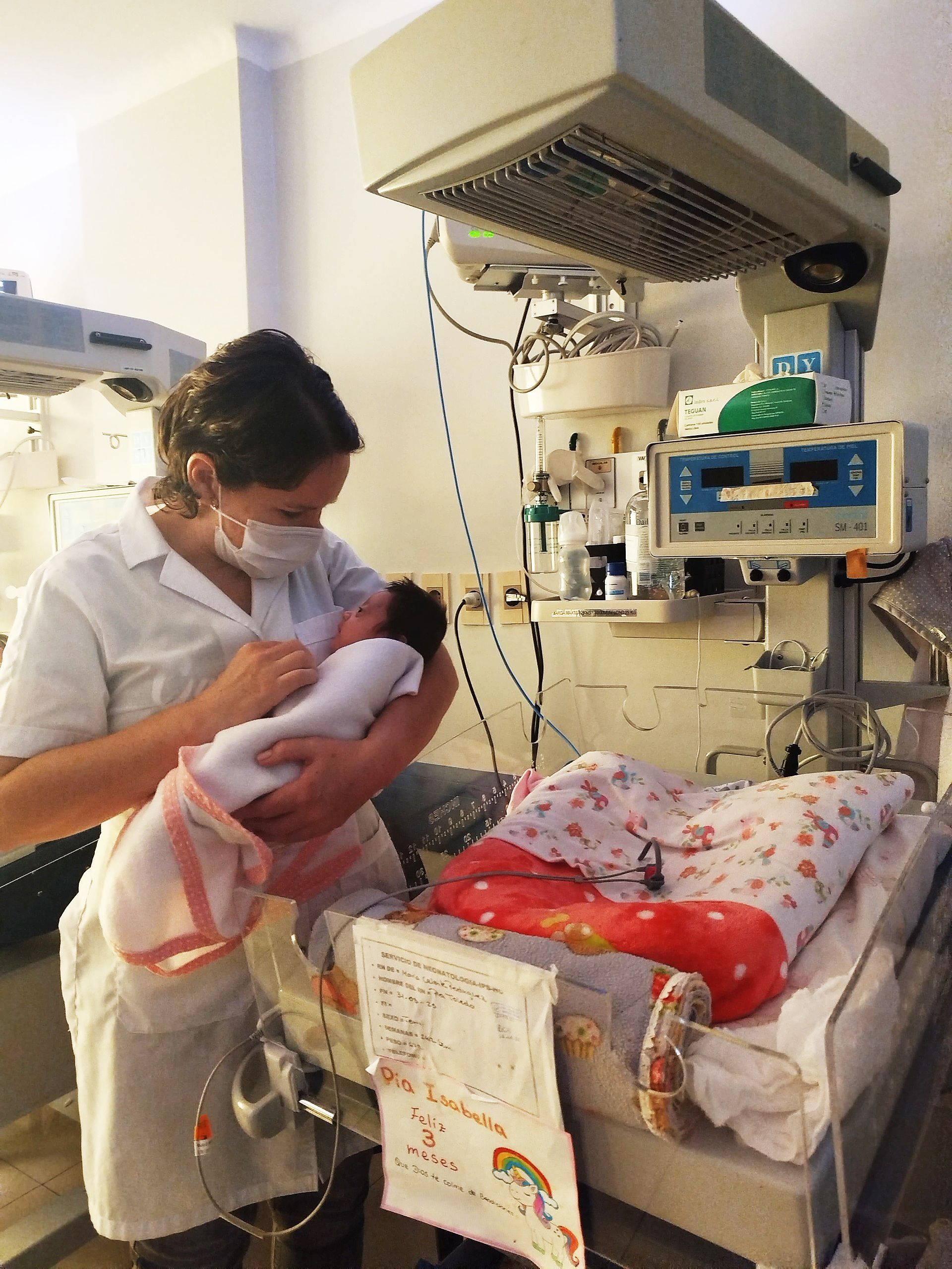 Pía Isabella nació con tan solo 24 semanas de gestación y 600 gramos de peso, enfrentando uno de los escenarios más complejos que puede atravesar un recién nacido. Sin embargo, gracias a un manejo humano, organizado y centrado en el neurodesarrollo, hoy Pía tiene 96 días de vida, ha alcanzado las 38 semanas de edad gestacional corregida, pesa 2.800 gramos, toma pecho materno directo, se encuentra sin sonda y en plena preparación para el alta médica.