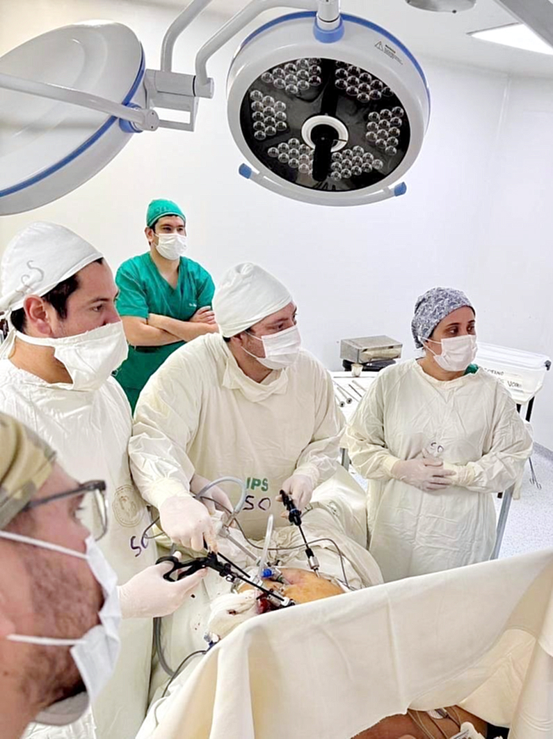 El equipo médico estuvo conformado por el Dr. Soel Feltes como cirujano principal, el Dr. Rodrigo Alfonso como ayudante, el Dr. Juan Carlos López en anestesia, la instrumentadora Lic. Patricia Vázquez y los enfermeros Lic. Edid Franco y Lic. Ángel Villalba. El trabajo en conjunto permitió concretar con éxito esta cirugía mínimamente invasiva.
