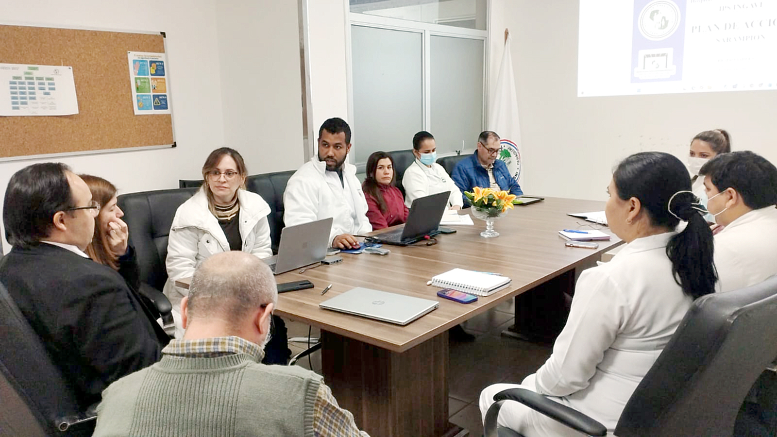 Hoy, lunes 11 de agosto, un equipo multidisciplinario del Hospital IPS Ingavi, encabezado por el Dr. Osmar Amarilla (director), junto con la Dra. Lourdes Melgarejo (coordinadora), Dr. Nery Rodríguez (jefe del Dpto de la Policlínica), Dr. Arnaldo Montiel (Dpto de Cirugía General), Ing. Evelyn Alviso (jefa del Dpto de Administración y Logística), Dra. Sara Cruz (jefa del Laboratorio), Lic. Rosalba Monges (Dpto de Enfermería) y Lic. Juárez Cuevas (Dpto de Epidemiología), se reunió para abordar temas cruciales sobre la preparación ante un eventual caso de sarampión.