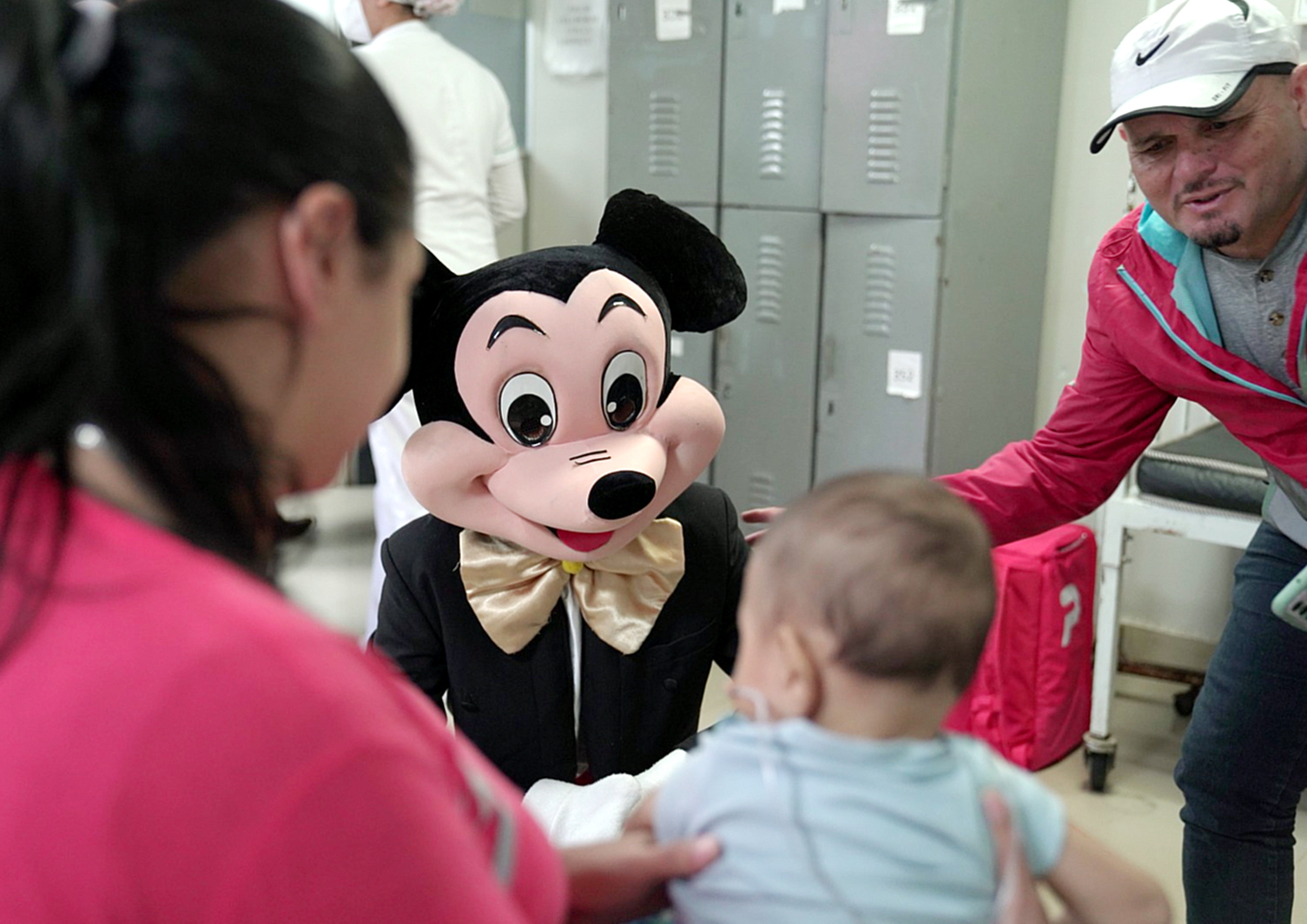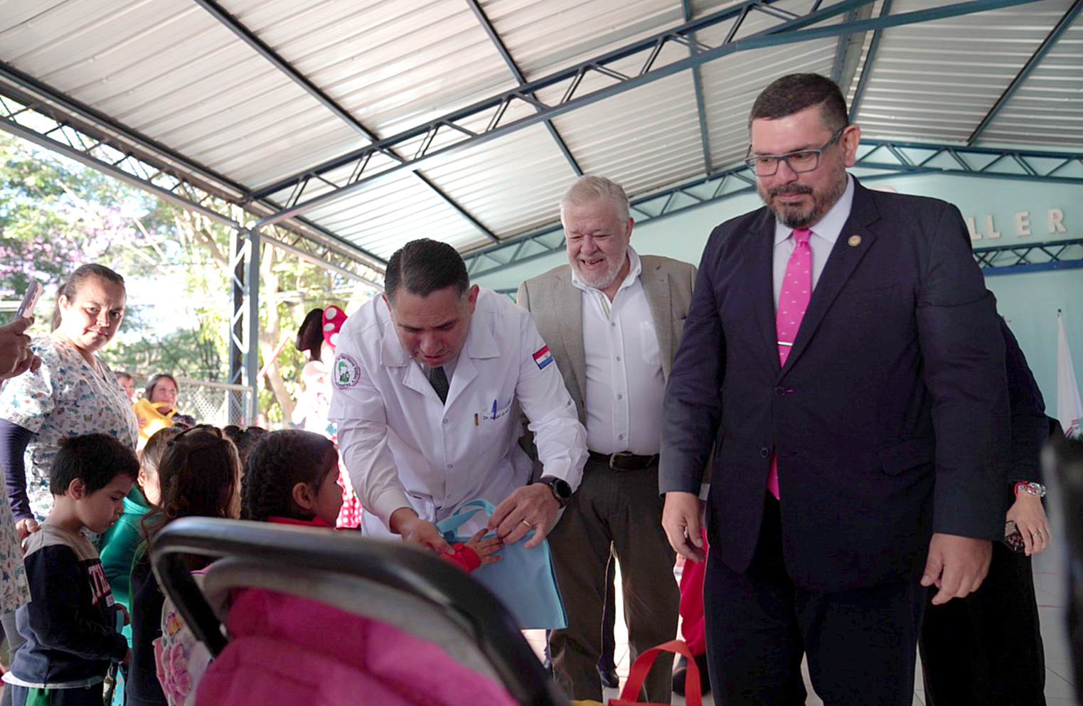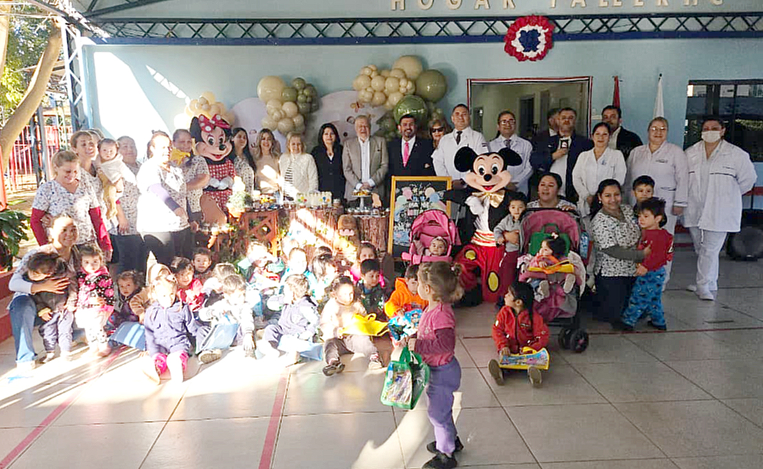 La comitiva encabezada por el Dr. Jorge Brítez, Presidente del Instituto de Previsión Social, Mickey y Mini, acompañados del personal de salud y autoridades del centro médico entregó obsequios en la mañana de este miércoles 13 de agosto.
