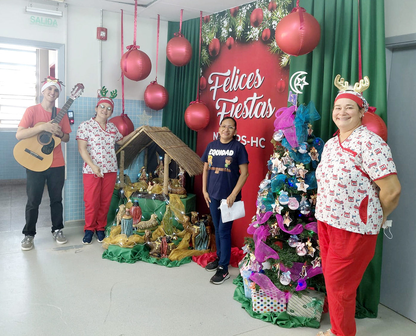 Las profesionales del Aula Hospitalaria del Hospital Central llevaron a cabo una serenata navideña este viernes 19 de diciembre con el fin de fomentar valores positivos como la gratitud, esperanza y amor a los pacientes pediátricos y los adultos internados durante estas fechas festivas.