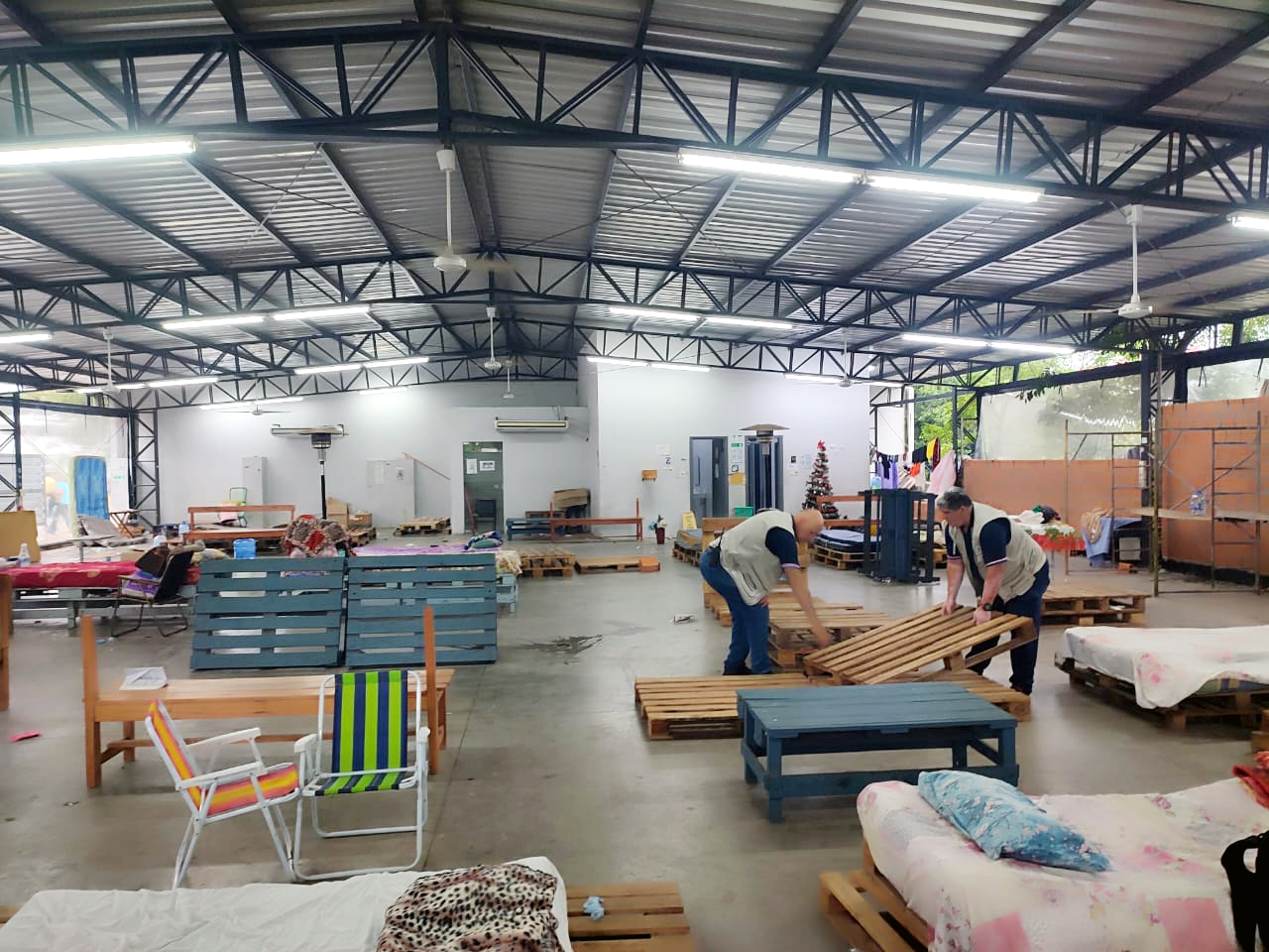 En la mañana de este lunes 29 de diciembre, mediante un trabajo conjunto entre varias áreas del Instituto de Previsión Social, entre ellas el Servicio Social, la Sección Control y Seguridad y el personal de Mantenimiento, se realizó la mudanza provisoria de los familiares de pacientes que se encontraban apostados en el albergue de la Unidad de Emergencias Médicas Adultos (UEMA).