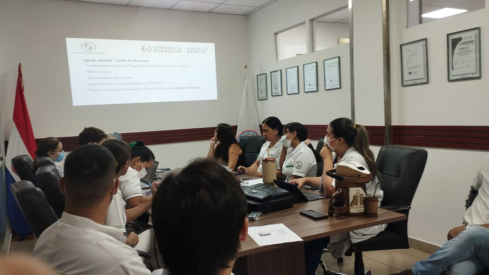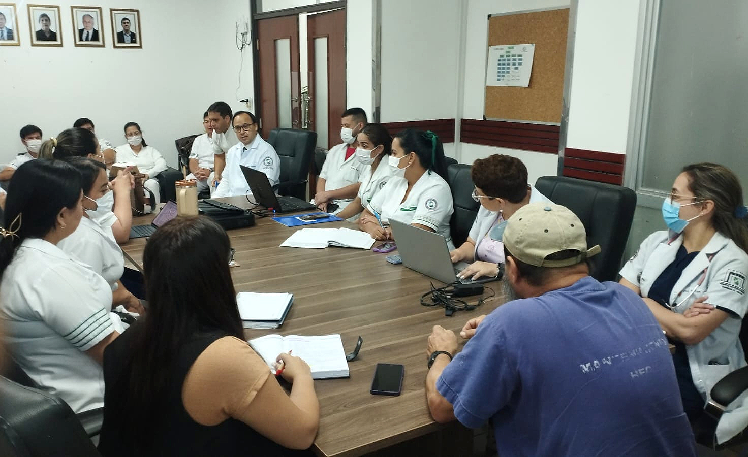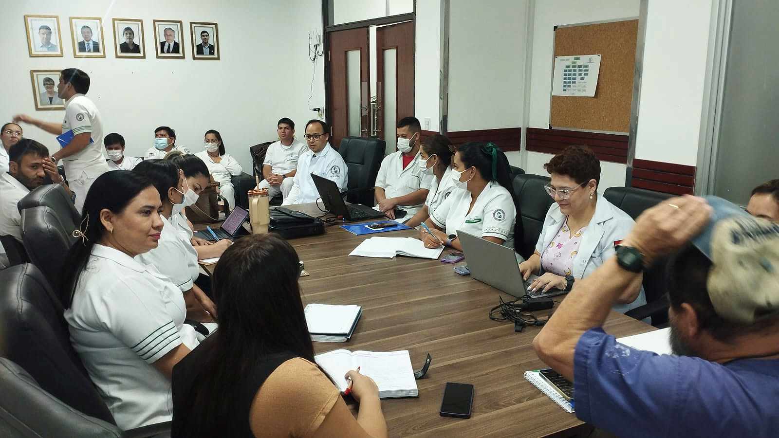 En este contexto, el director del Hospital Ingavi, Dr. Osmar Amarilla, encabezó una reunión con los responsables de los distintos servicios del hospital, junto a la Lic. Zunilda Garay, del Comité de Prevención y Control de Infecciones; la Dra. Geraldine Duarte, del área de Apoyo Médico y del Programa de Control de Infecciones; así como con personal de blanco de diferentes áreas, con el propósito de impulsar un plan de acción integral que refuerce las medidas de higiene hospitalaria y el control de infecciones.