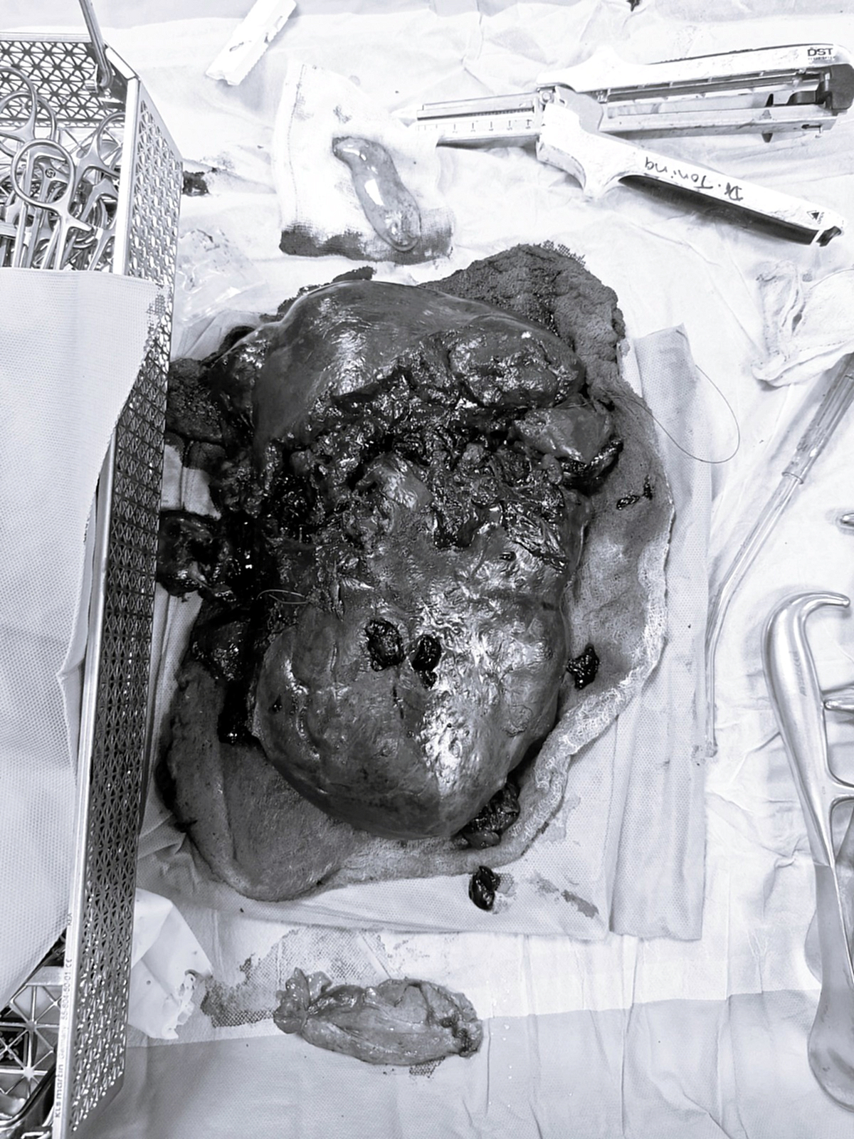 Durante la intervención se logró extraer un tumor de 12 centímetros de diámetro y 1,8 kilogramos de peso, mientras que el lóbulo derecho del hígado medía aproximadamente 15 centímetros. El resultado de la biopsia confirmó que se trataba de un hemangioma cavernoso gigante, mayor a 12 cm, complicado con una hemorragia intraparenquimatosa. Este tipo de tumor benigno de origen vascular es el más frecuente del hígado y se presenta con mayor incidencia en mujeres.