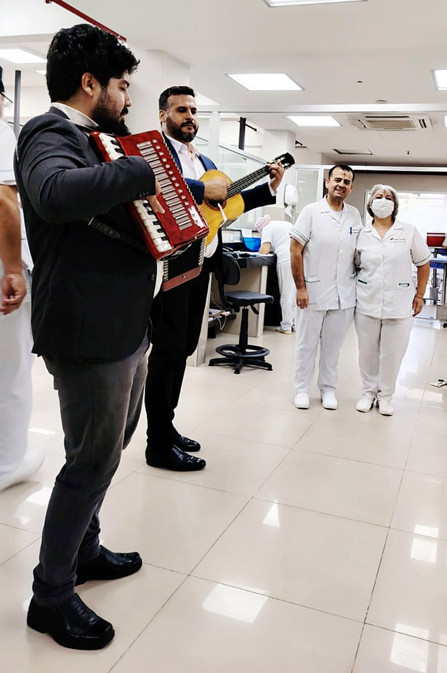 Este 18 de febrero, el Lic. Armando Medina, supervisor del Departamento de Enfermería (guitarra y voz) acompañado por el músico Omar Barrientos en el acordeón brindaron por segunda vez una serenata en el Servicio de Hematología y Oncología también denominado "Hospital Día”, en donde los pacientes oncológicos y sus acompañantes disfrutaron de canciones folklóricas paraguayas y baladas.