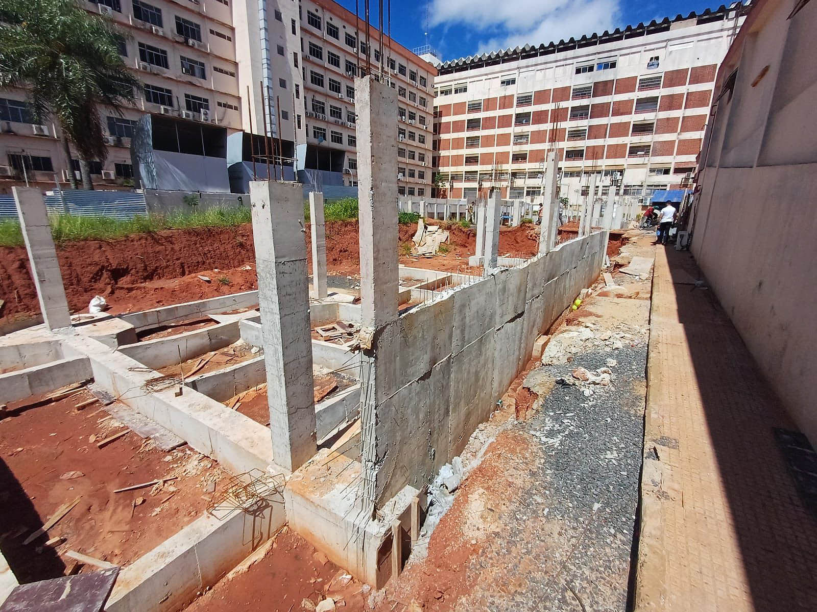Sobre el estado actual de los trabajos, Juan Penayo, Jefe de Mantenimiento del Hospital Central, precisó que la obra se encuentra en una activa etapa estructural. Los indicadores de avance físico detallan un 85% en movimiento de suelo, 75% en fundación, 70% en pilares, 70% en muros de contención y un 50% en la construcción de contrapisos.