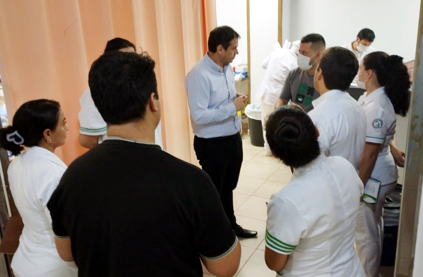 Este miércoles 25 de febrero, el Dr. Miguel Gómez, nuevo director del Hospital de Especialidades Quirúrgicas IPS Ingavi, realizó una recorrida por el sector de Urgencias acompañado de la coordinadora Dra. Claudia González, el Dr. Nery Rodríguez, jefe de la Policlínica, el Dr. Álvaro Benítez, jefe de Urgencias, y jefes del Departamento de Enfermería.